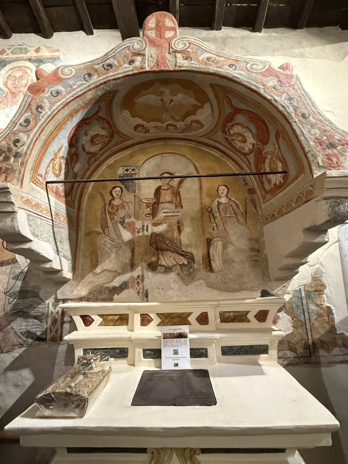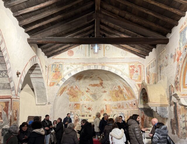 Pieve di Teco (IM). Questa mattina a Calderara, frazione di Pieve di Teco, si è svolta la cerimonia di presentazione dei lavori di restauro della Chiesa antica di San Giorgio, un importante recupero che riporta all’antica bellezza un luogo di culto che meritava di essere conservato. Con questo intervento la Diocesi di Albenga-Imperia, guidata dal Vescovo Guglielmo Borghetti, si è mostrata sempre attiva in campo culturale e nella salvaguardia del patrimonio artistico del nostro territorio. Sono stati presentati gli importanti lavori ed il restauro che ha interessato in particolare gli affreschi della Chiesa antica di San Giorgio a Calderara, realizzati verso la fine del XIV secolo dal cosiddetto Maestro di Bastia d’Albenga. Il completamento dei lavori rappresenta un passo significativo nel recupero di una delle testimonianze più antiche della devozione locale a San Giorgio, oltre che un ulteriore tassello nel percorso di conoscenza e tutela del patrimonio storico-artistico dei comprensori che afferiscono alla diocesi ingauna.  “Si tratta- spiega la Curia- di un notevole intervento che restituisce nuova leggibilità a un importante frammento della storia religiosa e artistica del territorio”. L’iniziativa è stata realizzata dalla Parrocchia di San Giorgio in Calderara in collaborazione con Formae Lucis e l’Ufficio Beni Culturali della Diocesi di Albenga-Imperia, con il supporto della Soprintendenza Archeologia, Belle Arti e Paesaggio della Liguria. A portare i saluti istituzionali nell’occasione di festa per i parrocchiani di San Giorgio, del vicariato di Pieve di Teco e di tutta la nostra Diocesi, sono stati don Ruggero Gorletti, parroco della comunità, Enrico Pira, sindaco di Pieve di Teco e Castore Sirimarco, direttore dell’Ufficio Beni Culturali e del progetto Formae Lucis, che negli ultimi anni ha promosso un ampio programma di valorizzazione del patrimonio ecclesiastico diocesano. Sono seguiti gli interventi tecnici dei professionisti coinvolti nel cantiere. Hanno preso la  parola Martina Avogadro e Francesca De Cupis, funzionarie della Soprintendenza, che hanno illustrato il valore storico-artistico delle pitture ed il contesto conservativo in cui si inserisce il restauro. La restauratrice Yeorgia Stafylopatis, responsabile dell’intervento, ha presentato anche le fasi operative condotte sulle superfici decorate, evidenziando le scelte metodologiche, i risultati ottenuti e le parti ora nuovamente leggibili. A chiudere gli interventi l’architetto Daniela Poggi, con un approfondimento sull’edificio e sulle problematiche strutturali connesse alla conservazione degli apparati decorativi. “E’ opportuno ricordare -ha spiegato Castore Sirimarco- che la Diocesi di Albenga Imperia ha partecipato ai finanziamenti del PNRR con oltre dieci progetti, ottenendo risultati significativi nel campo della tutela, del restauro e della valorizzazione del patrimonio artistico e architettonico. Questa partecipazione ha permesso di avviare interventi mirati su edifici ecclesiastici e opere d’arte di grande rilevanza storica, contribuendo non solo alla loro conservazione, ma anche alla creazione di nuove opportunità di fruizione culturale per il territorio”. L’evento ha visto la partecipazione di un folto pubblico e di molte autorità provenienti dai comuni vicini. “Si è trattato- spiega il noto esperto d’arte ed editor Armando D’Amaro- di una ghiotta occasione per gli appassionati di Arte per scoprire da vicino un intervento che non ha riguardato solo l’arte e la conservazione, ma anche la memoria e l’identità di una comunità”. Grande soddisfazione ha espresso anche il sindaco d Garlenda Alessandro Navone: “ A Calderara questa mattina, nella chiesa antica, è stato completato un enorme lavoro di recupero che riporta all’antica bellezza un importante luogo di culto costruito in diverse fasi fin dal 1300. Si è trattato di un intervento che rientra in un ciclo di finanziamenti PNRR che interessa anche la Cappella di San Bernardo di Paravenna, ad oggi quasi concluso grazie all’impegno del nostro Don Mauro Marchiano. Complimenti alla Curia di Albenga-Imperia, all’ufficio beni culturali ed a Formae Lucis per il costante lavoro di valorizzazione del patrimonio artistico presente sul territorio”.
