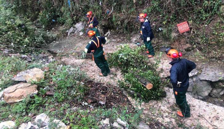 Nel corso delle prove pratiche di taglio e di abbattimento gli operatori hanno eliminato la vegetazione spontanea lungo via della Né, a ridosso dell’Ecocentro, e nell’alveo del torrente che costeggia la strada. Il taglio di alberi e arbusti ha rappresentato un’operazione di messa in sicurezza in caso di piena e di criticità idrogeologica.