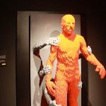 Oggi i famosi “Lego” sono esposti in un’interessante mostra al Porto Antico di Genova, dove il mattoncino diventa opera d’arte. “The art of the brick” è infatti un’esposizione di capolavori realizzati con i famosi pezzetti di plastica a cura di  Nathan Sawaya, artista americano da sempre appassionato di “Lego”, che lascia la brillante carriera di avvocato per dedicarsi a questa particolare ed unica forma d’arte. Sculture tridimensionali che condensano l’emozione della vita in tutti i suoi aspetti, dove le forme assumono una plasticità inaspettata nonostante la forma squadrata dei mattoncini. I corpi, incredibilmente flessuosi, si materializzano nello spazio generando meraviglia nell’osservatore. Figure enormi, realizzate con innumerevoli pezzetti di plastica, sono davvero la reinterpretazione di un gioco comune che si fa opera d’arte. Sculture originali ma anche quadri che ritraggono personaggi famosi, anche qui grazie al chiaroscuro Andy Wharol che forse avrebbe molto apprezzato il lavoro di Sawaya, ci osserva attento dalla sua cornice a due dimensioni. Una parte della mostra è poi dedicata alla replica di statue e quadri famosi, come “Il discobolo”, “La Gioconda” o “L’urlo”, ricostruiti in mattoncini “Lego”.
