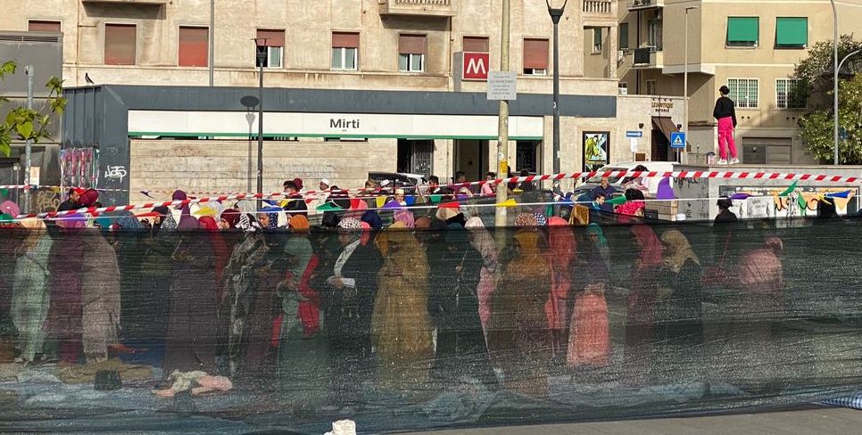 Mentre gli uomini musulmani pregano, le donne musulmane con il velo vengono rinchiuse in una sorta di “rete da pollaio” con tanto di telo oscurante. E il tutto accade su una pubblica piazza di Roma, nel quartiere Centocelle, la Capitale d’Italia.
