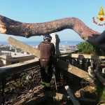I vigili hanno messo in sicurezza l’area rimuovendo le parti pericolanti ed hanno protetto il marciapiede transennandolo. Sul posto anche personale della polizia locale.