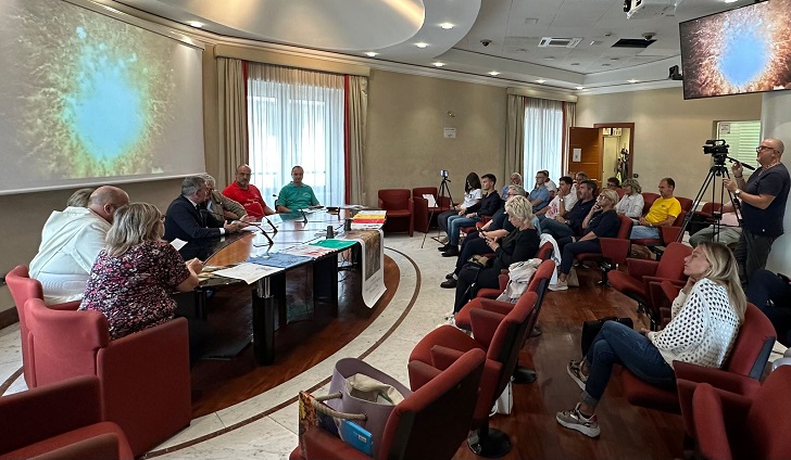 Alla conferenza stampa di presentazione della “Sagra del Fuoco”, che si è tenuta a Genova nella Sala Caduti di Nassiriya della Regione Liguria. Hanno partecipato il Presidente di Regione Liguria Giovanni Toti, l’assessore al turismo Augusto Sartori. Il Comune di Recco, era rappresentato dal isindaco Carlo Gandolfo. Don Francesco Pepe, in rappresentanza del rettore del Santuario del Suffragio. Il portavoce del Comitato dei quartieri Carlo Guglieri. Il priore della Confraternita Nostra Signora del Suffragio Rosa Zerega, il presidente del Comitato dei quartieri Flavio Malchiodi.