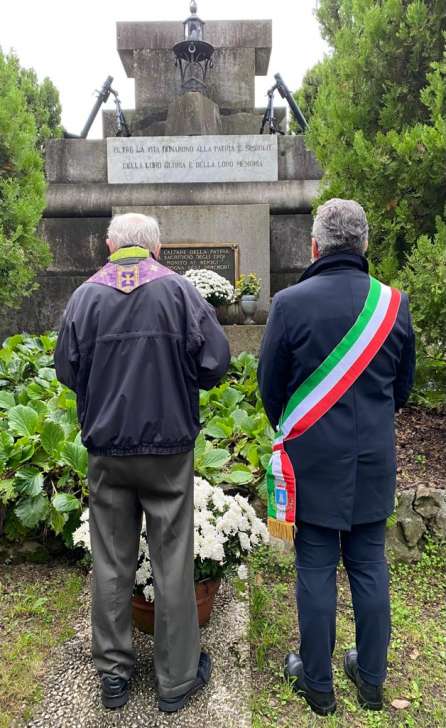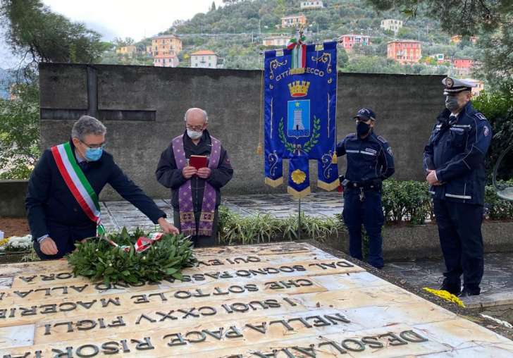 Il primo cittadino di Recco, accompagnato dall’arciprete don Pasquale Revello, ha deposto le corone d’alloro al