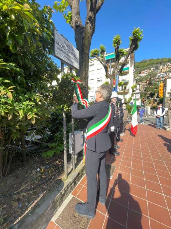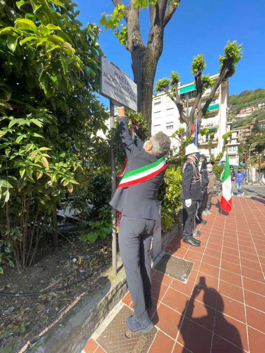 In occasione della celebrazione del 25 aprile, questa mattina Carlo Gandolfo, sindaco di Recco ha deposto una corona d’alloro presso la targa posta in piazza Aldo Gastaldi.