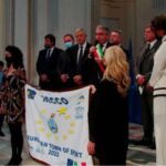 Recco, consegnata al sindaco Gandolfo la bandiera di Comune Europeo dello Sport 2022, la mattina del 21 marzo alla cerimonia nella Reggia di Venaria Reale.