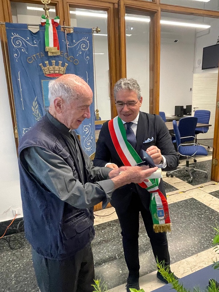 Recco, la città premia don Revello onorandolo del “Recchelino d’oro”.
