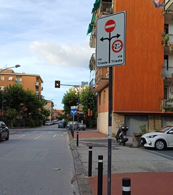 Parallelamente agli interventi orizzontali, sono stati ripristinati i cartelli verticali con l’indicazione dei nomi delle vie in via Pianello e in via della Giudea, migliorando l’orientamento e la riconoscibilità degli assi stradali. In via Vittorio Veneto, sul lato del torrente, sono stati tracciati nuovi stalli riservati alle moto, a seguito dello spostamento della postazione RSU in via Fiume.