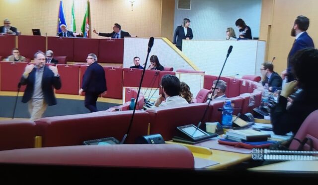 Bagarre e scontro nell’aula del parlamentino di Regione Liguria, con il consigliere regionale e segretario provinciale del Pd Simone D’Angelo che stamane è stato allontanato dal presidente dell’Assemblea legislativa Stefano Balleari (FdI) e le minoranze che, durante la sospensione dei lavori, hanno chiesto le dimissioni dello stesso Balleari.