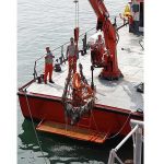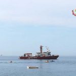 I resti dell’animale, spiaggiatosi ieri, sono stati riportati in mare e issati sulla motonave.