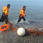 Questa mattina i vigili del fuoco sono intervenuti con il nucleo sommozzatori e la motonave della Gadda, per il recupero di una carcassa di un delfino spiaggiato a Priaruggia.