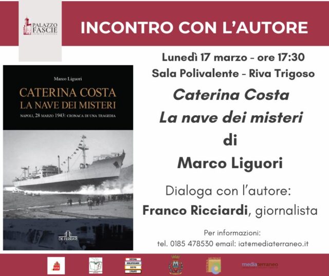 Dopo le tappe di Genova, Cala Loca (Savona) e La Spezia, la vicenda dell’esplosione del mercantile “Caterina Costa”, avvenuta il 28 marzo 1943 nel porto di Napoli, approda nuovamente in Liguria. Lunedì 17 marzo alle ore 17:30 presso la Sala Polivalente di Riva Trigoso (frazione di Sestri Levante, Città Metropolitana di Genova) il giornalista e scrittore Marco Liguori presenterà il suo saggio storico “Caterina Costa, la nave dei misteri” (De Ferrari Editore), con prefazione di Nicola Costa.
