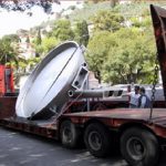 Foto 2 La Padella, dopo aver raggiunto Camogli con il camion a rimorchio, viene con fatica portata verso Piazza Colombo. Ritenendo difficoltoso, per le sue dimensioni ed il suo peso, farla passare sotto l’arco tra la Passeggiata e Piazza Colombo, si pensa di portarla sulla riva del mare, alandola sulla spiaggia, “vararla” e, una volta in acqua, rimorchiarla in porto.