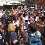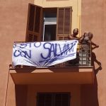 A distanza sono presenti anche alcuni attivisti dei centri sociali con cartelli che contestano Salvini