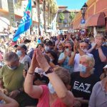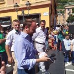 Sul palco a Ventimiglia insieme al leader della Lega, sono presenti Edoardo Rixi, Alessandro Piana, Flavio di Muro, Sonia Viale e il sindaco Gaetano Scullino.