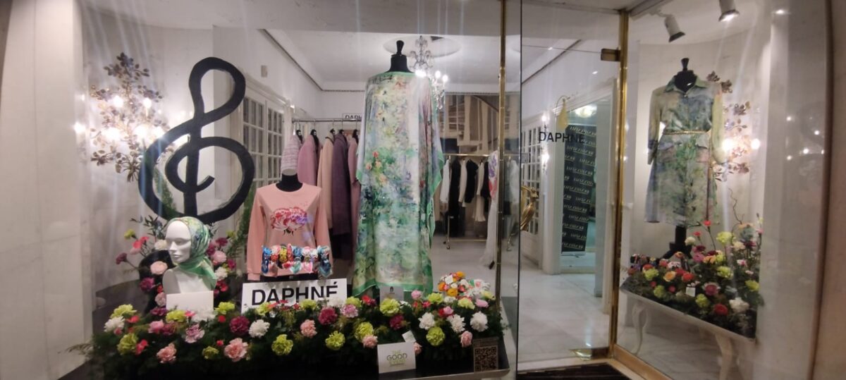 La vetrina dell’atelier Daphné in corso Matteotti a Sanremo