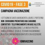 “I Cittadini di Santa Margherita Ligure (e Portofino) NON dovranno prenotarsi ma saranno direttamente contattati telefonicamente seguendo gli elenchi dell’anagrafe sanitaria a partire dalla popolazione più anziana.