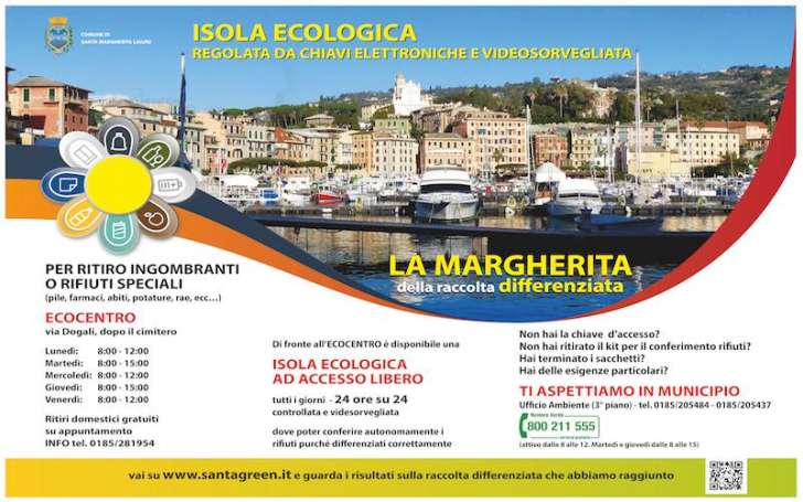 Si ricordano inoltre che i canali informativi per un corretto conferimento o per eventuali segnalazioni: Municipio (ufficio ambiente, 3° piano) tel 0185/205484 oppure 0185/205437 Numero Verde 800 211 555