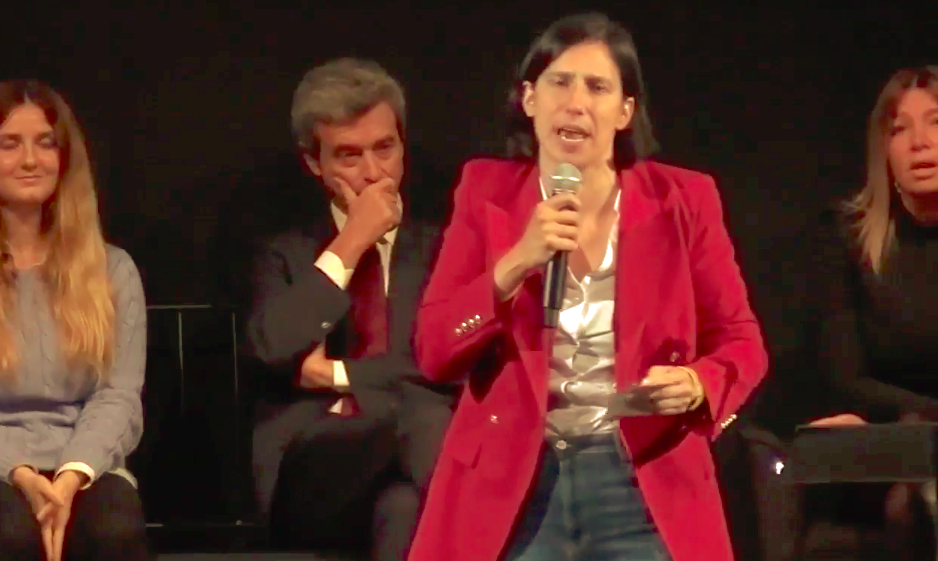 Schlein e’ stata accolta da un lungo applauso e poi ha posato per le foto di rito prima di sedersi accanto al leader del M5S Giuseppe Conte e con gli altri componenti della coalizione di centrosinistra in platea: “Si scrive Bucci, ma si legge Toti”.