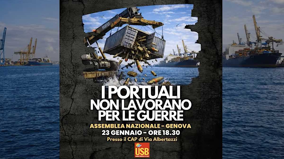Da Genova prende forma una nuova iniziativa di protesta dei lavoratori portuali contro i conflitti armati e l’utilizzo degli scali per il transito di materiali bellici. L’impulso arriva dall’assemblea svoltasi venerdì 23 gennaio nel capoluogo ligure, promossa da USB Porti, che ha posto le basi per una mobilitazione coordinata a livello internazionale.