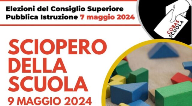 Sciopero scuola intera giornata del 9 maggio di Unicobas e Usb