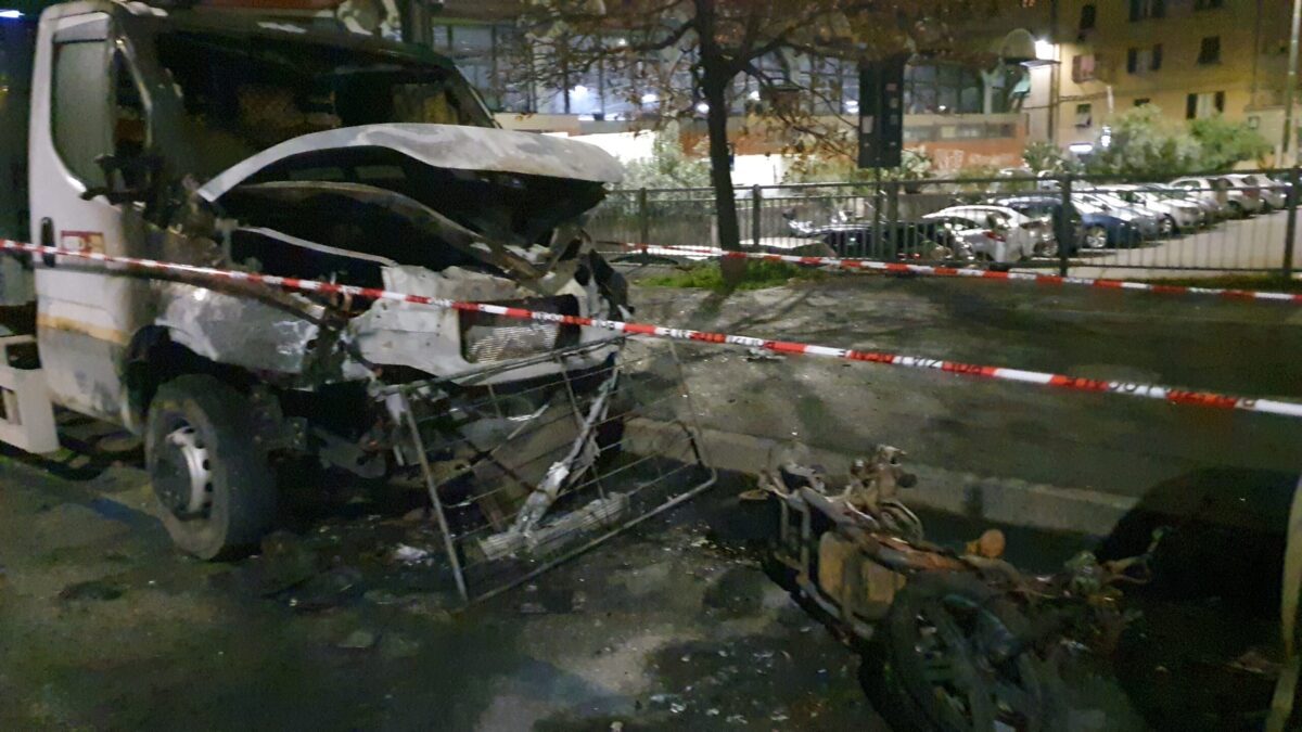 La guerriglia urbana ha reso necessario il blocco del traffico per separare le due fazioni e consentire l’intervento dei vigili del fuoco. Chiamati a spegnere un incendio propagatosi a seguito del lancio dei fumogeni nei pressi del mercato di piazza Romagnosi. In particolare in via Jean Monnet l’episodio più pesante con uno scooter che è andato distrutto dalle fiamme e sono state gravemente danneggi un furgone con cassone ed un’auto (come si vede nel nostro video).