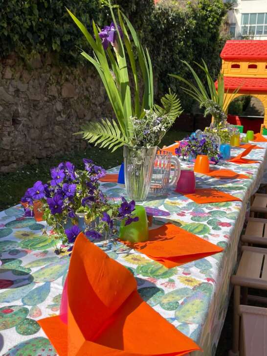 Ogni sezione del nido si è quindi occupata, in parte dell’allestimento della tavola, realizzando i segnaposti, composizioni di fiori e altre decorazioni e dei piccoli doni che sono stati poi consegnati alle famiglie. I bambini vestiti a festa, un menu creato ad hoc e una bella giornata di sole hanno completato l’opera, trasformando il momento del pranzo in una bella occasione per festeggiare insieme.