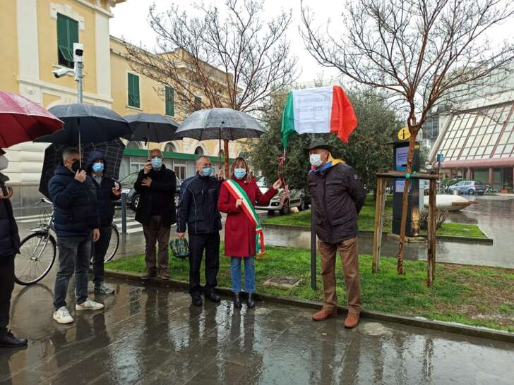 Nonostante la pioggia, il piccolo gruppo si è riunito per assistere allo scoprimento della targa che commemora la tragica fine delle vittime delle foibe e degli esuli istriano-dalmati alla fine della seconda guerra mondiale. Una nuova denominazione finalizzata a seguito dell’approvazione della Commissione toponomastica del Comune di Sestri levante in occasione del Giorno del Ricordo. ABov
