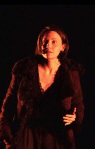 cosiddetto triangolo amoroso (lui, lei, l’altra) ,dai toni tragicomici. Sulla scena, Serena Balivo (foto nel testo) – Premio Ubu under 35 nel 2017 e fondatrice della compagnia con il regista ed autore Mariano Dammacco – dà corpo, nervi e voce alle due donne protagoniste, due ruoli opposti dello stesso fronte, in un intreccio di immagini e frammenti a rivelare un universo emotivo in cui non si potrà non riconoscersi: conflitti, illusioni, entusiasmi, rancori, frivolezze, solitudini. Accanto a lei (loro) c’è Erica Galante; anche la figura muta dell’uomo al centro del triangolo, immerso in uno scenario onirico che fa di lui una maschera silenziosa, una presenza evanescente.