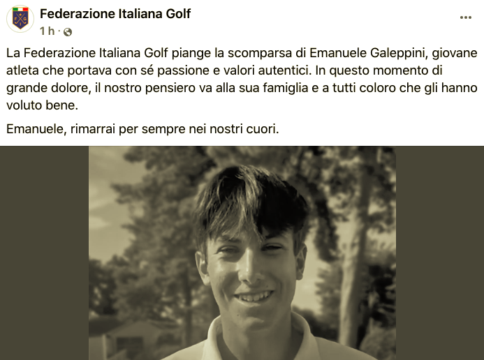 Tuttavia, in tarda serata i responsabili della Federazione Italiana Golf hanno pubblicato su fb il seguente comunicato, confermando purtroppo la morte del ragazzo genovese: “La Federazione Italiana Golf piange la scomparsa di Emanuele Galeppini, giovane atleta che portava con sé passione e valori autentici. In questo momento di grande dolore, il nostro pensiero va alla sua famiglia e a tutti coloro che gli hanno voluto bene. Emanuele, rimarrai per sempre nei nostri cuori”.