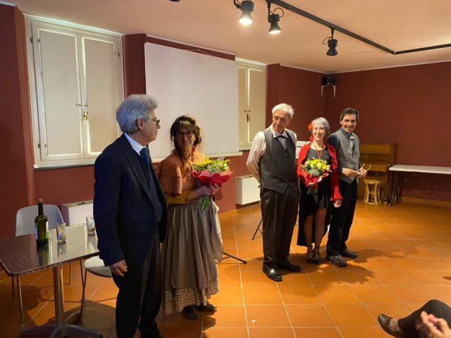 Albenga. Nell’aula magna dell’Unitre  Comprensoriale Inaguna, al terzo piano del secentesco Palazzo Oddo, in via Roma, nell’incantevole centro storico di Albenga, la compagnia teatrale amatoriale Mare Tempestoso ha ottenuto un lusinghiero successo di pubblico, strappando più volte applausi a scena aperta durante l’esibizione di due atti unici dal titolo: “Dramma familiare” di Amerigo Giuliani e “La Ballerina di flamenco” da “La donna e il fantoccio” di Pierre Louys. Entrambi adattati dal regista e capocomico della compagnia  Giuseppe Grieco. Il pomeriggio teatrale, organizzato con la collaborazione della Fondazione Palazzo Oddo e del Comune di Albenga, si è aperto con la presentazione del presidente Unitre Claudio Almanzi che ha ceduto la parola a Francesca Grieco che ha illustrato le caratteristiche dei due testi proposti. Ad esibirsi sono stati Sabrina Bordone, Francesca Grieco, Pino Grieco, Claudio Almanzi, Silvio Granero e Gianfranco Piastra. La Compagnia è stata fondata nel gennaio 2010 da un gruppo di amici desiderosi di calcare il palcoscenico a livello amatoriale. Il debutto ufficiale avvenne a Genova, a Palazzo Ducale (Stanza della Poesia), il 10 aprile 2010 con la lettura teatralizzata dalle pagine del romanzo di Robert James Waller, nella libera riduzione di Giuseppe Grieco, “I ponti di Madison County”, edito nel 2001 da Sperling & Kupfer. Decine gli spettacoli ed esibizioni successive in Liguria, Piemonte ed Emilia Romagna. La Compagnia Mare Tempestoso, affiliata da molti anni alla Uilt – Unione Italiana Libero Teatro, è una emanazione della Symbol 2000 di Albenga, una associazione culturale senza fini di lucro che opera dall’ormai lontano gennaio 2007 ed è presieduta dal noto giornalista albenganese Vincenzo Bolia che era presente alla rappresentazione. Dopo questo appuntamento il 14 maggio è prevista l’annuale gita sociale dell’Unitre che avrà quali mete Pontremoli (Museo delle Stele, Ponte del Diavolo e Castello Piagnaro) e Fosdinovo (Castello Malaspina). A conclusione dell’anno academico 2024-2025 è prevista una giornata, il 24 maggio, con cerimonia ufficiale di chiusura che si svolgerà nel Chiostro dell’ Ex Asilo Ester Siccardi in Viale Martiri, 1 ad Albenga. Al mattino alle ore 10 ci sarà l’inaugurazione della mostra dei lavori realizzati nei vari laboratori e corsi durante l’anno accademico. Nel pomeriggio alle 15 e 30 la consegna dei sigilli. L’Unitre ad Albenga conta oltre cento fra docenti e conferenzieri, 70 corsi, quasi 500 studenti; nei tre plessi si svolgono annualmente oltre duemila ore di lezione e da settembre 2024 i volontari e soci del sodalizio accademico ingauno hanno collaborato per tutto l’anno accademico con la Biblioteca Civica.