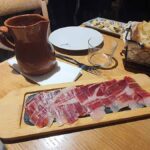 Il vino, qui, non è un accessorio ma un linguaggio. La carta spazia dai rossi corposi della Ribera del Duero e della Rioja ai bianchi aromatici della Galizia, fino al dolce passito Mistela de Xaló. Non mancano le birre iberiche più amate: la San Miguel, Estrella Galicia, Alhambra e naturalmente la Sangría alla spina. Servita fresca alla spina e con la frutta, come nelle migliori taverne di Madrid.