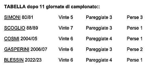 Diventa interessante confrontare il rendimento di queste splendide annate con quella attuale a guida Blessin, limitandoci ovviamente alle prime 11 giornate di campionato.