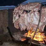 “Intanto asado è la tecnica di cottura e non una parte del bovino”, spiega Bruzzone, “si fissano le pance di mucca ad uno speciale telaio in metallo creato da noi, che ha la capacità di girare su sé stesso in tutte le direzioni, il fuoco è in basso e viene riverberato da una lamiera metallica. La carne cuoce per sei otto ore, rilasciando il grasso”.