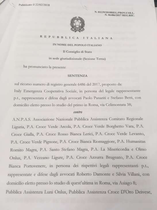Lo ha dichiarato oggi il consigliere regionale Andrea Melis (M5S) sul caso della sentenza del Consiglio di Stato dello scorso febbraio, che riguarda il trasporto sanitario e le pubbliche assistenze della Liguria (v. articolo precedente).