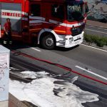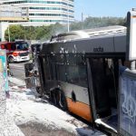 Intorno alle 17, un bus Amt ha preso fuoco in via Cantore nei pressi della fermata lato monte di fronte al Matitone.