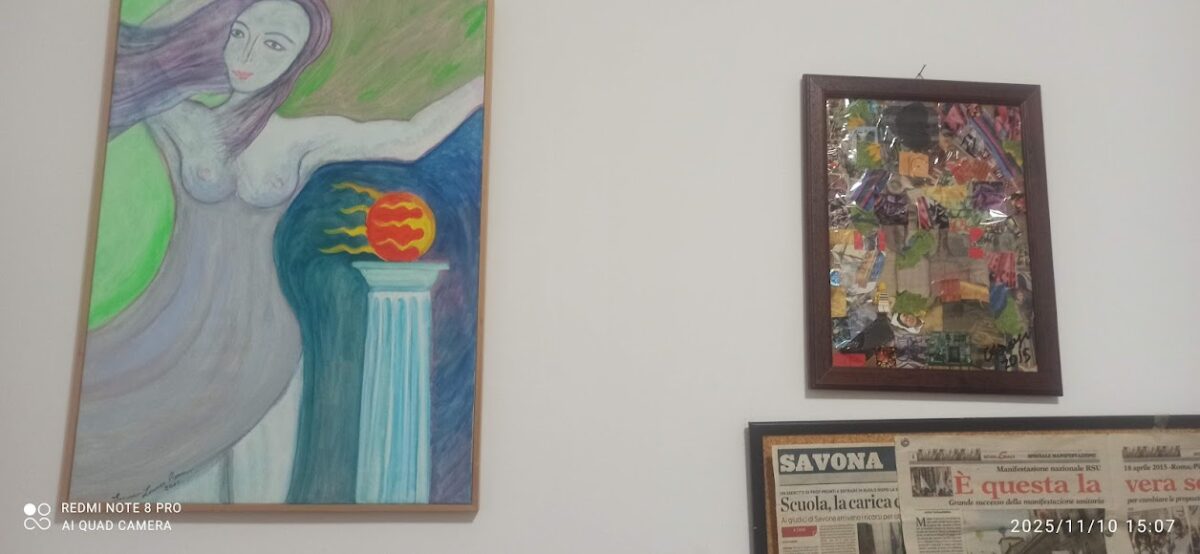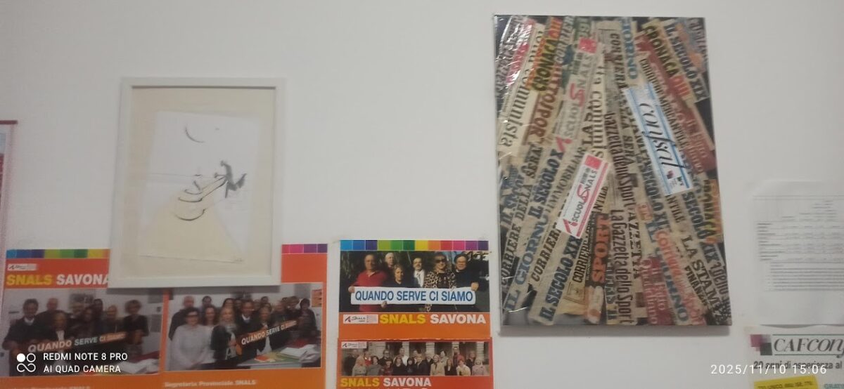 Lo sportello SNALS è ubicato in una posizione centrale, proprio di fronte all’ingresso della stazione ferroviaria di Albenga, in Piazza Matteotti,1, in un luogo facilmente raggiungibile in auto ed a piedi ed accessibile, sia in treno, sia in pullman dai comuni vicini. “L’ apertura di una nuova sede sindacale- aveva scritto 13 anni or sono il giornalista Adalberto Guzzinati- è da considerare un evento molto importante soprattutto in un momento come questo in cui i poteri forti cercano di indebolire i diritti dei lavoratori. I cittadini, trattati sempre più come sudditi, hanno la necessità di essere aiutati e sostenuti se non dalla politica almeno dal mondo sindacale impegnato in prima linea a salvaguardare non solo il diritto all’ istruzione, ma anche i principi stessi e fondanti dello stato di diritto”. E sembra proprio che non sia cambiato nulla da allora in quanto le emergenze del settore scolastico e della società civile sono sempre le stesse. Attualmente la sede Snals è aperta lunedì e giovedi dalle 15 alle 17, il mercoledì dalle 16 alle 18. E questi sono gli stessi orari di visita per coloro che, pur non essendo interessati al mondo della scuola, volessero ammirare la collettiva che resterà aperta fino al 15 dicembre. Claudio Almanzi