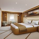 I saloni, sia del main deck che dello skylounge, godono di ampia luminosità grazie alle grandi finestrature a tutta altezza che garantiscono l’ingresso di luce naturale e consentono una vista diretta sul mare. Ripensata anche la cucina dedicata all’alta ristorazione, con grande isola centrale e accesso diretto alle celle frigo.