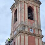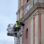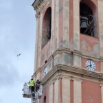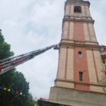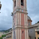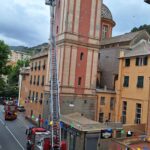 Intervento dei vigili del fuoco questa mattina a Voltri per la caduta di alcuni calcinacci dal campanile della chiesa di Sant’Erasmo in via Camozzini.